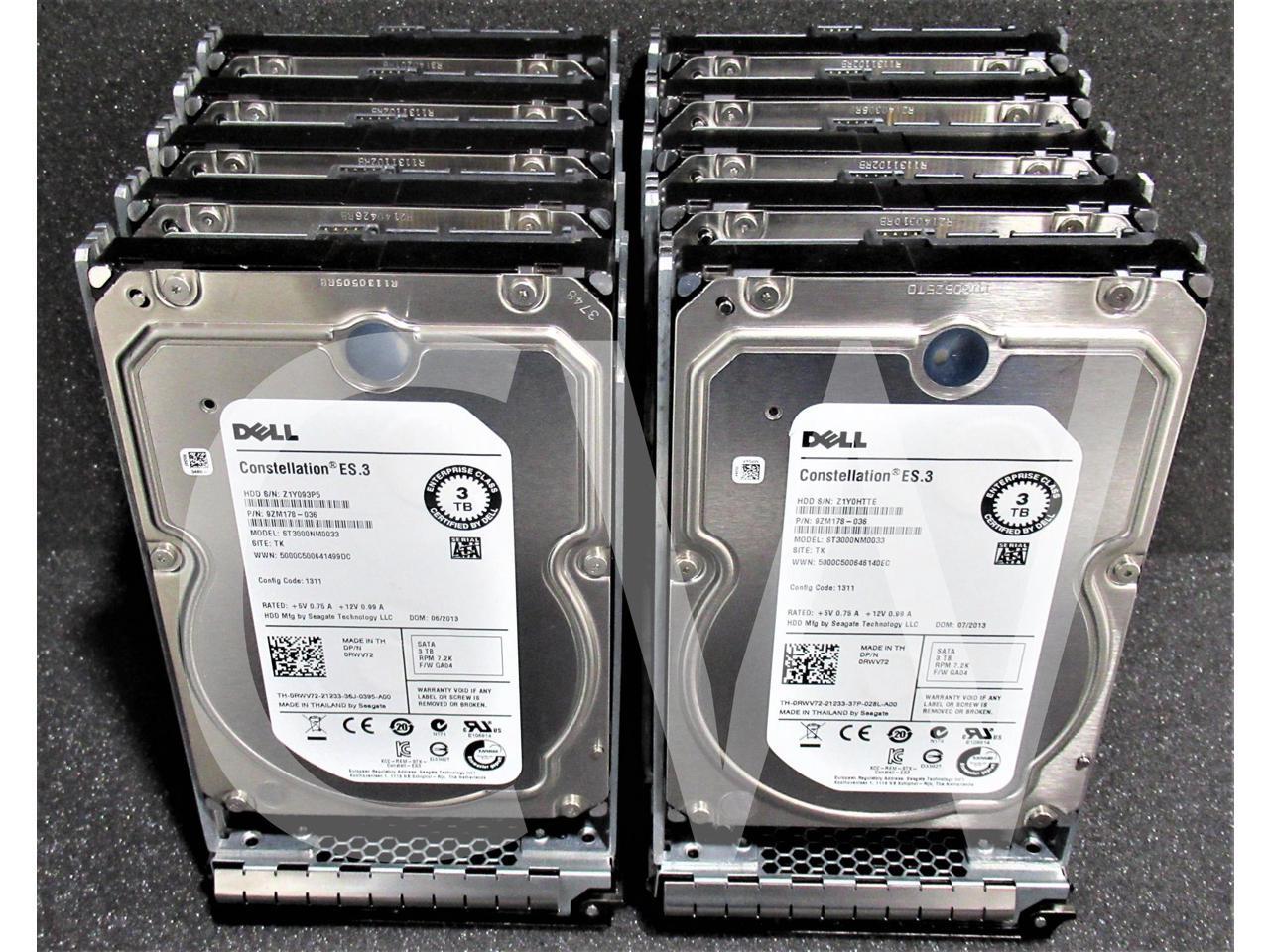 - LOT OF 10 Dell CONSTELLATION ES.3 RWV72 0RWV72 3TB 7200RPM 6Gbps 128MB 3.5IN SATA Hard Drive ST3000NM0033 - Includes R Series Caddy/ Tray - FOR SERVERS ONLY.