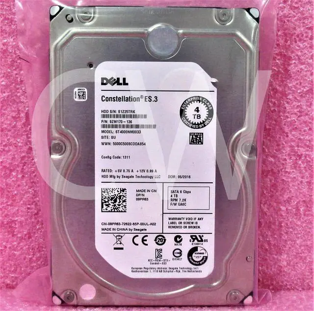 DELL CONSTELLATION ES. 3 9PR63 09PR63 4TB 7200RPM 6Gbps 128MB 3.5IN SATA Hard Drive ST4000NM0033