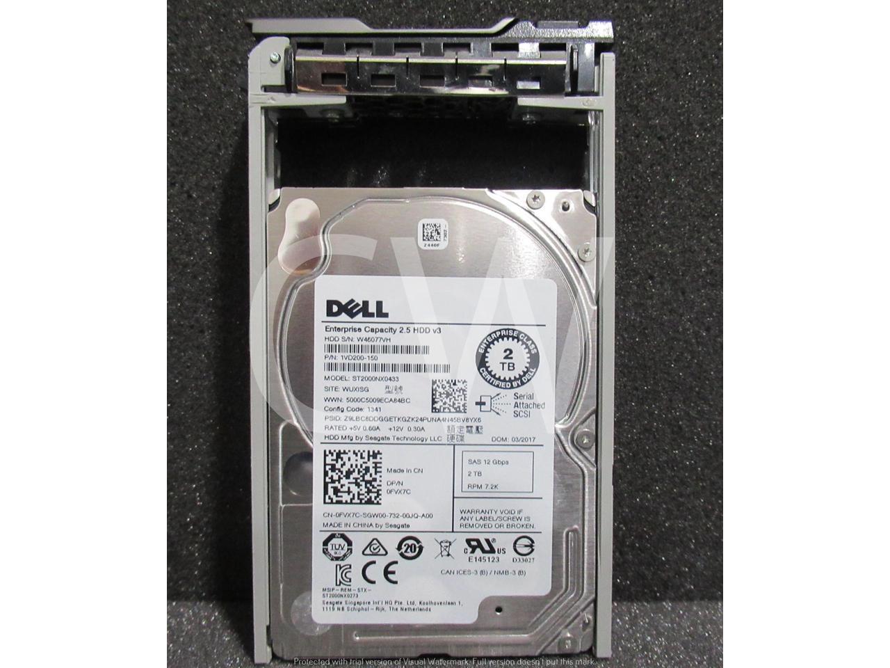 Dell ENTERPRISE FVX7C 0FVX7C 2TB 7200RPM 12Gbps 128MB 2.5IN SAS Hard Drive ST2000NX0433 - Includes R Series Caddy/ Tray