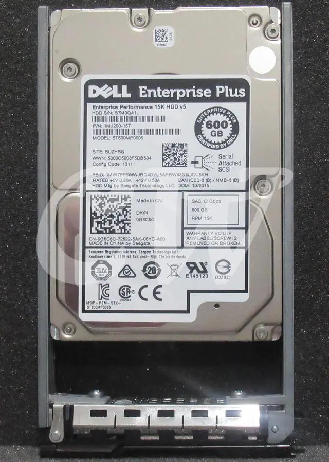 DELL COMPELLENT G6C6C 0G6C6C 600GB 15000RPM 12Gbps 2.5IN SAS Hard Drive ST600MP0005 - Includes COMPELLENT Caddy/ Tray