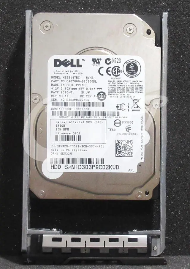 Dell ENTERPRISE K532N 0K532N 146GB 15000RPM 6Gb/s 16MB 2.5IN SAS Hard Drive MBE2147RC - Includes R Series Caddy/ Tray
