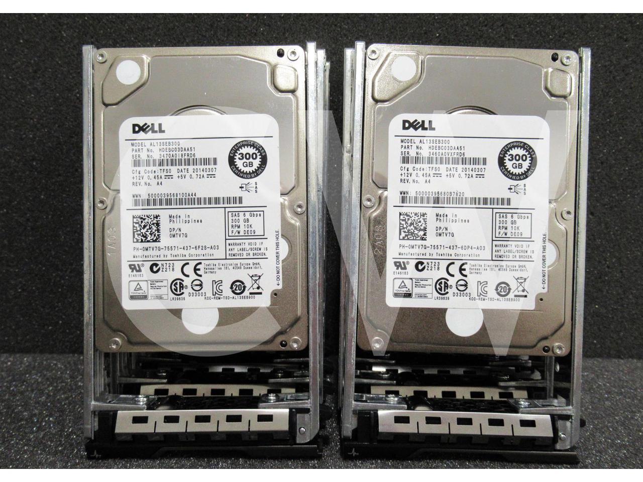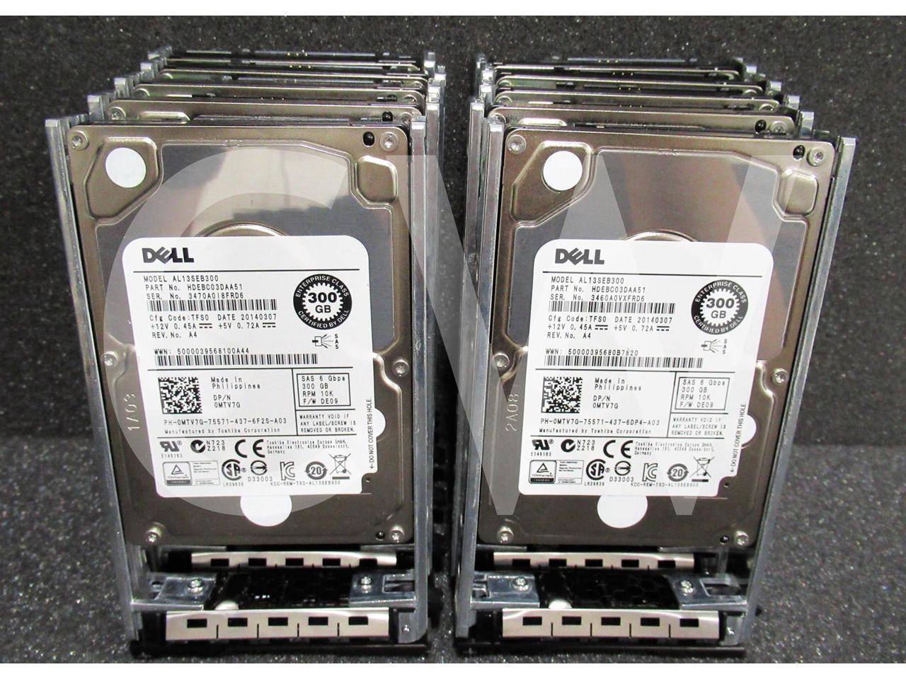 - LOT OF 10 Dell MTV7G 0MTV7G 300GB 10000RPM 6Gb/s 64MB 2.5IN SAS Hard Drive AL13SEB300 - Includes POWEREDGE Servers Caddy/ Tray