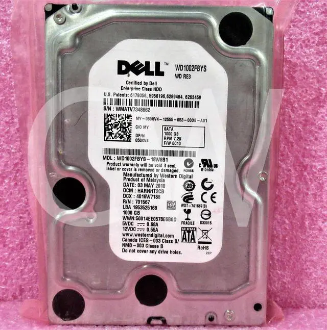 Dell ENTERPRISE 50XV4 050XV4 1TB 7200RPM 3Gbs 32MB 3.5IN SATA Hard Drive WD1002FBYS - (Bare Drive ONLY)