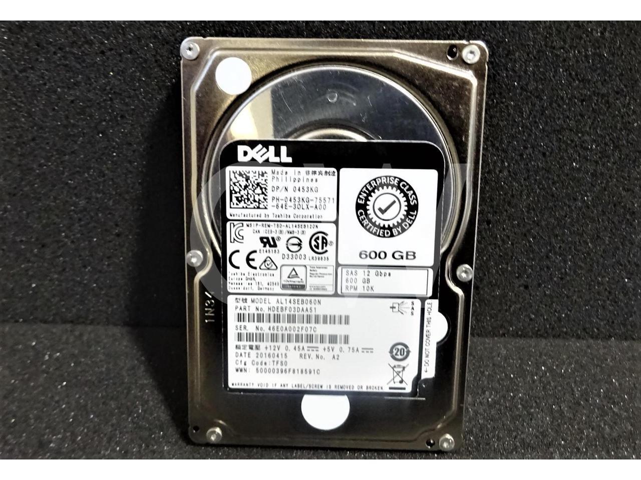 Dell ENTERPRISE 453KG 0453KG 600GB 10000RPM 12Gbps 128MB SFF 2.5IN SAS Hard Drive AL14SEB060N