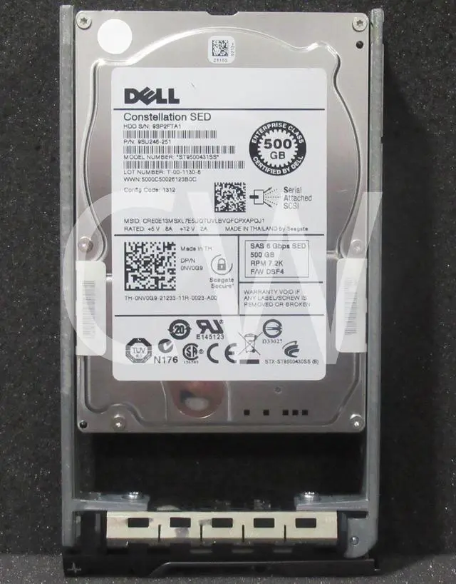 Dell CONSTELLATION SED NV0G9 0NV0G9 500GB 7200RPM 6Gb/s 16MB 2.5IN SAS Hard Drive ST9500431SS - Includes POWEREDGE Servers Caddy/ Tray