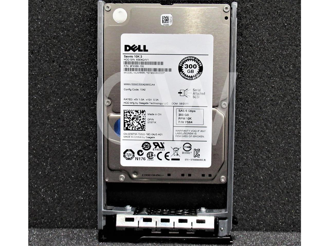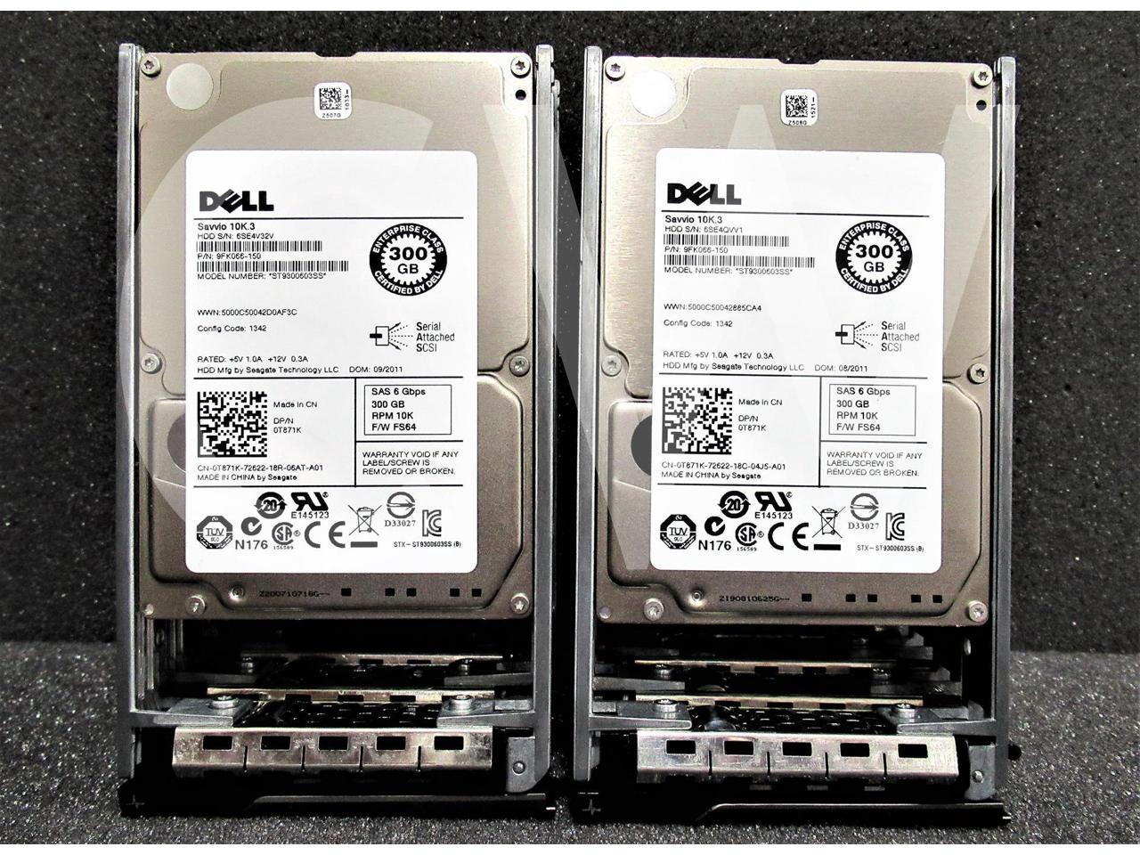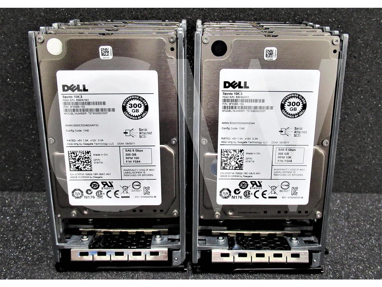 - LOT OF 10 Dell SAVVIO 10K.3 T871K 0T871K 300GB 10000RPM 6Gbps 16MB 2.5IN SFF SAS Hard Drive ST9300603SS - Includes POWEREDGE Servers Caddy/ Tray