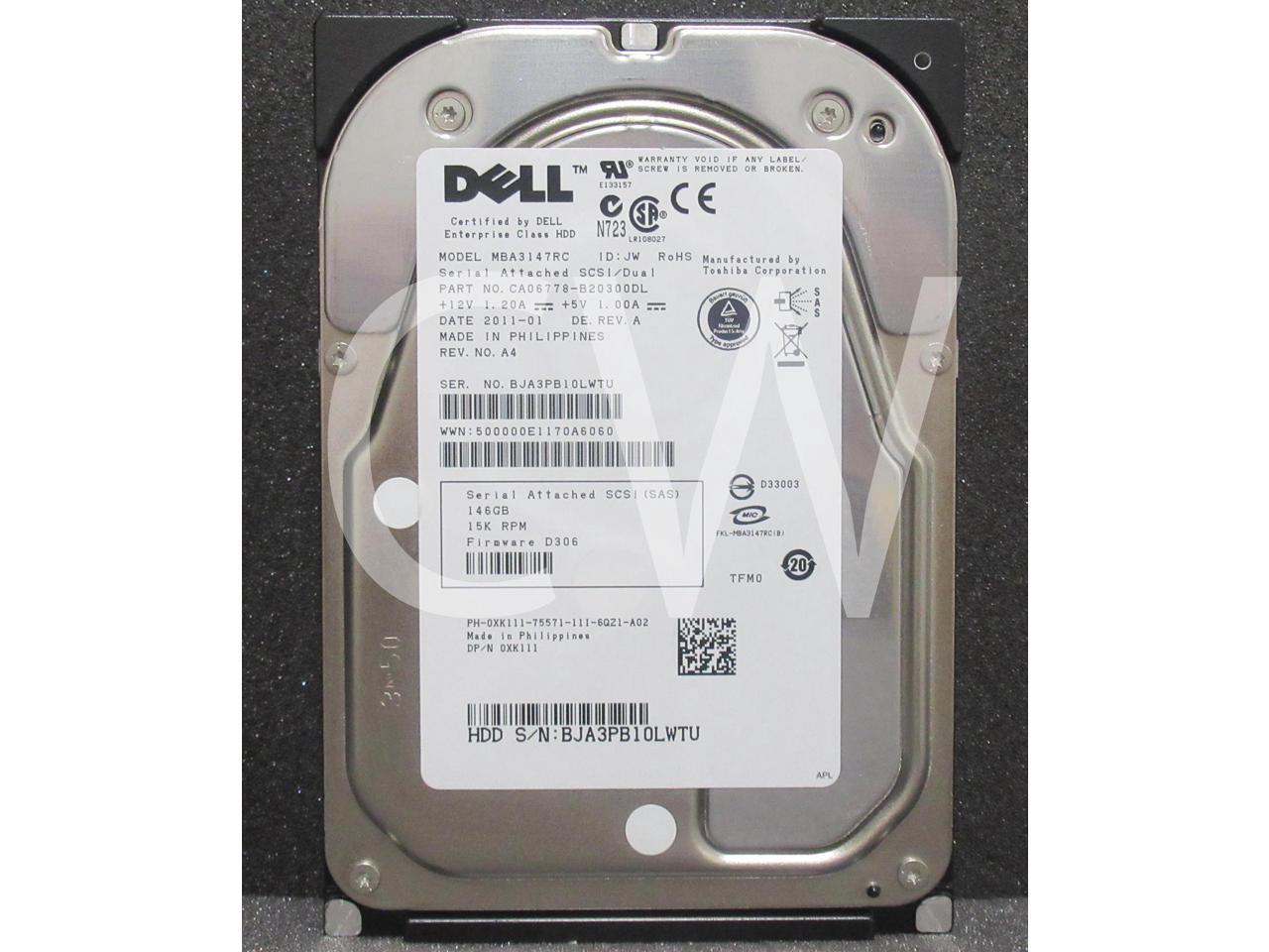 Dell ENTERPRISE XK111 0XK111 146GB 15000RPM 3Gbps 16MB 3.5IN SAS Hard Drive MBA3147RC - (ZERO HOURS HDD)