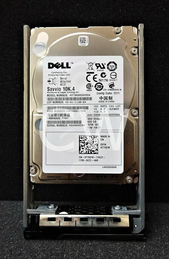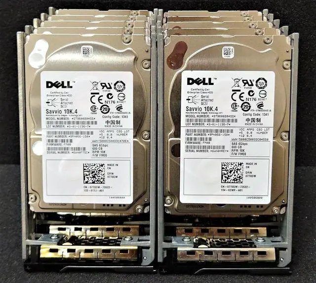 LOT OF 10 Dell SAVVIO 10K. 4 07T0DW 7T0DW 600GB 10000RPM 6Gb/s 64MB 2.5IN SAS Hard Drive ST9600204SS - Includes R Series Caddy/ Tray