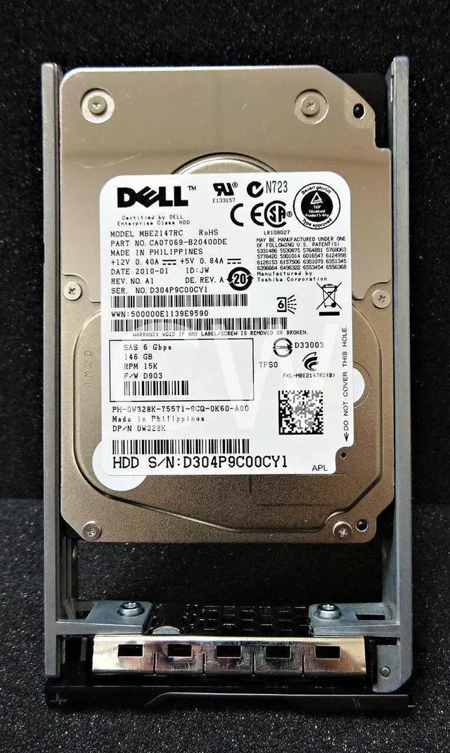 • Dell ENTERPRISE W328K 0W328K 146GB 15000RPM 6Gbps 16MB 2.5IN SAS Hard Drive MBE2147RC - Includes R Series Caddy/ Tray