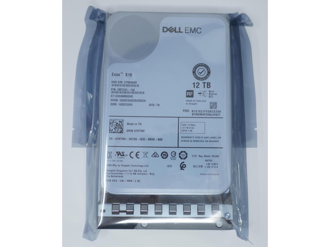 - 7KT9W Dell 12TB SAS 3.5" 7.2K 12G Server Hard Drive With Caddy for G14-G16 ST12000NM009G 2MT233-150