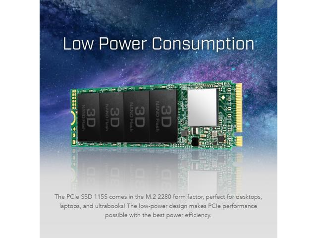 - The PCIe SSD 115S comes in the M.2 2280 form factor, perfect for desktops, laptops, and ultrabooks! The low-power design makes PCIe performance possible with the best power efficiency.