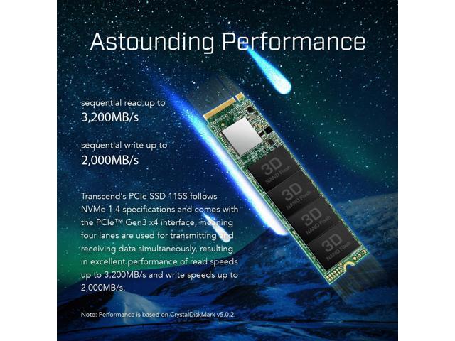 - Transcend's PCIe SSD 115S follows NVMe 1.4 specifications and comes with the PCIe Gen3 x4 interface, meaning four lanes are used for transmitting and receiving data simultaneously, resulting in excellent performance of read speeds up to 3,200MB/s and write speeds up to 2,000MB/s.