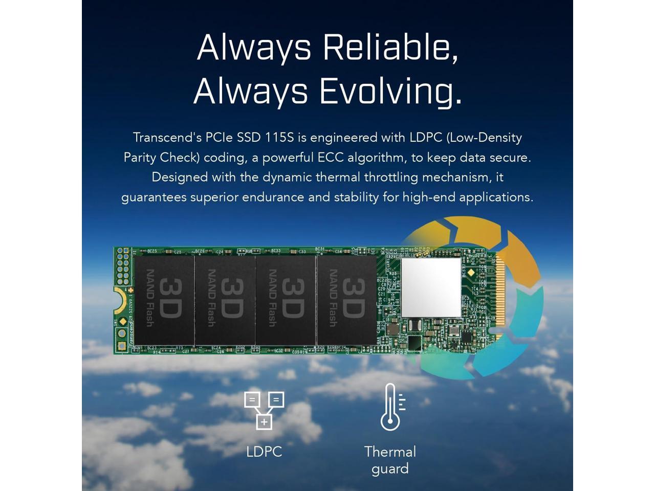 500GB Transcend PCIe SSD 115S NVMe M.2 2280 PCIe Gen3 x4 SSD