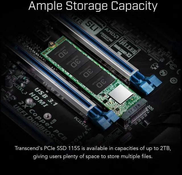 Transcend's PCIe SSD 115S is available in capacities of up to 2TB, giving users plenty of space to store multiple files.