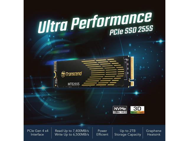 Transcend MTE255S 2 TB Solid State Drive - M.2 2280 Internal - PCI Express NVMe (PCI Express NVMe 4.0 x4) - Gaming PC, Desktop PC, Notebook, Computer Device Supported - 0.33 DWPD - 1200 TB TBW