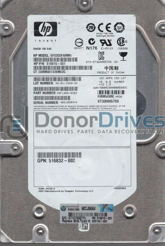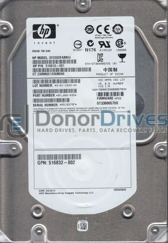 • St3300657ss, 6Sj, Pn 9Fl066-035, Fw Hpd6, Hp 300Gb Sas 3.5 Hard Drive