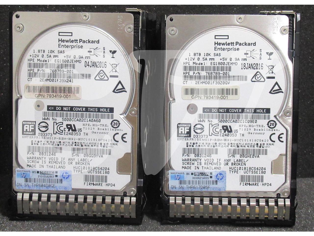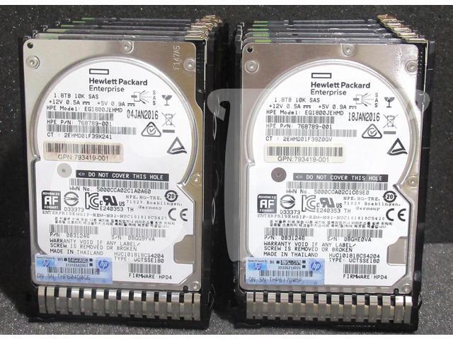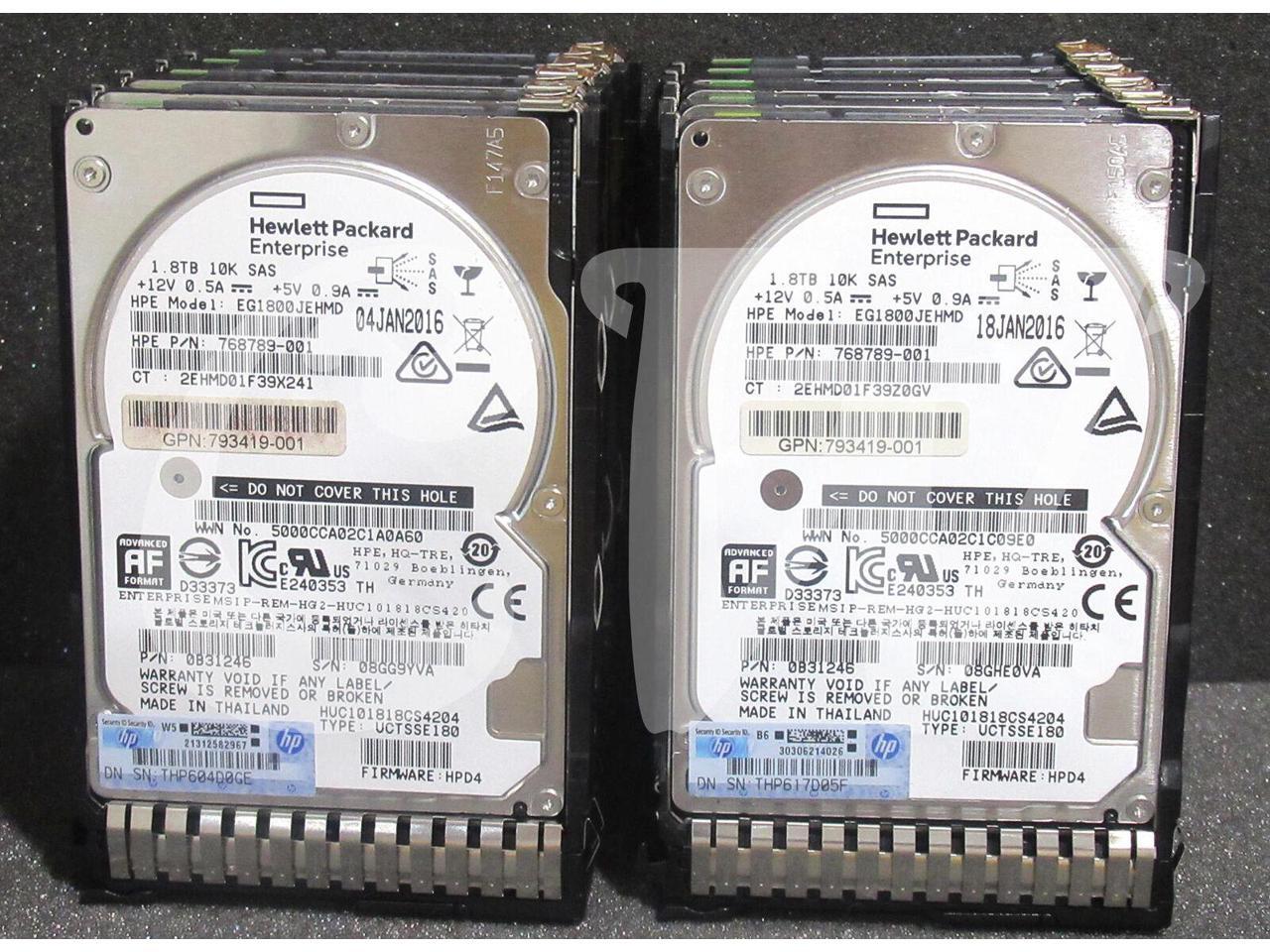 LOT OF 10 HPE 791055-001 768789-001 791034-B21 1.8TB 10000RPM 12Gbps 2.5IN SAS Hard Drive EG1800JEHMD - Includes SMART CARRIER Caddy/ Tray