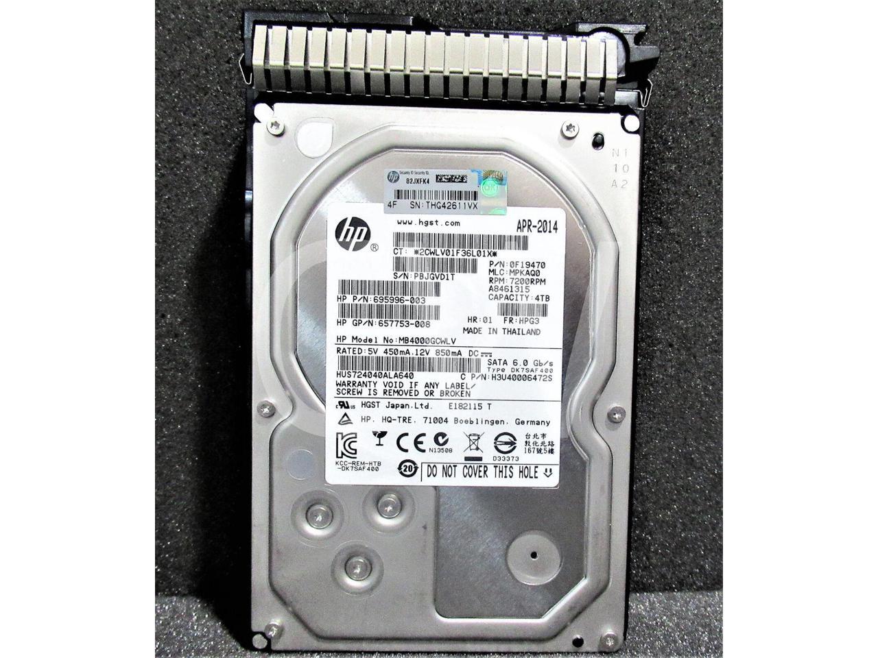 HP MB4000GCWLV 695996-003 693687-B21 4TB 7200RPM 6Gbps 64MB 3.5IN SATA Hard Drive - Includes SMART CARRIER Caddy/ Tray