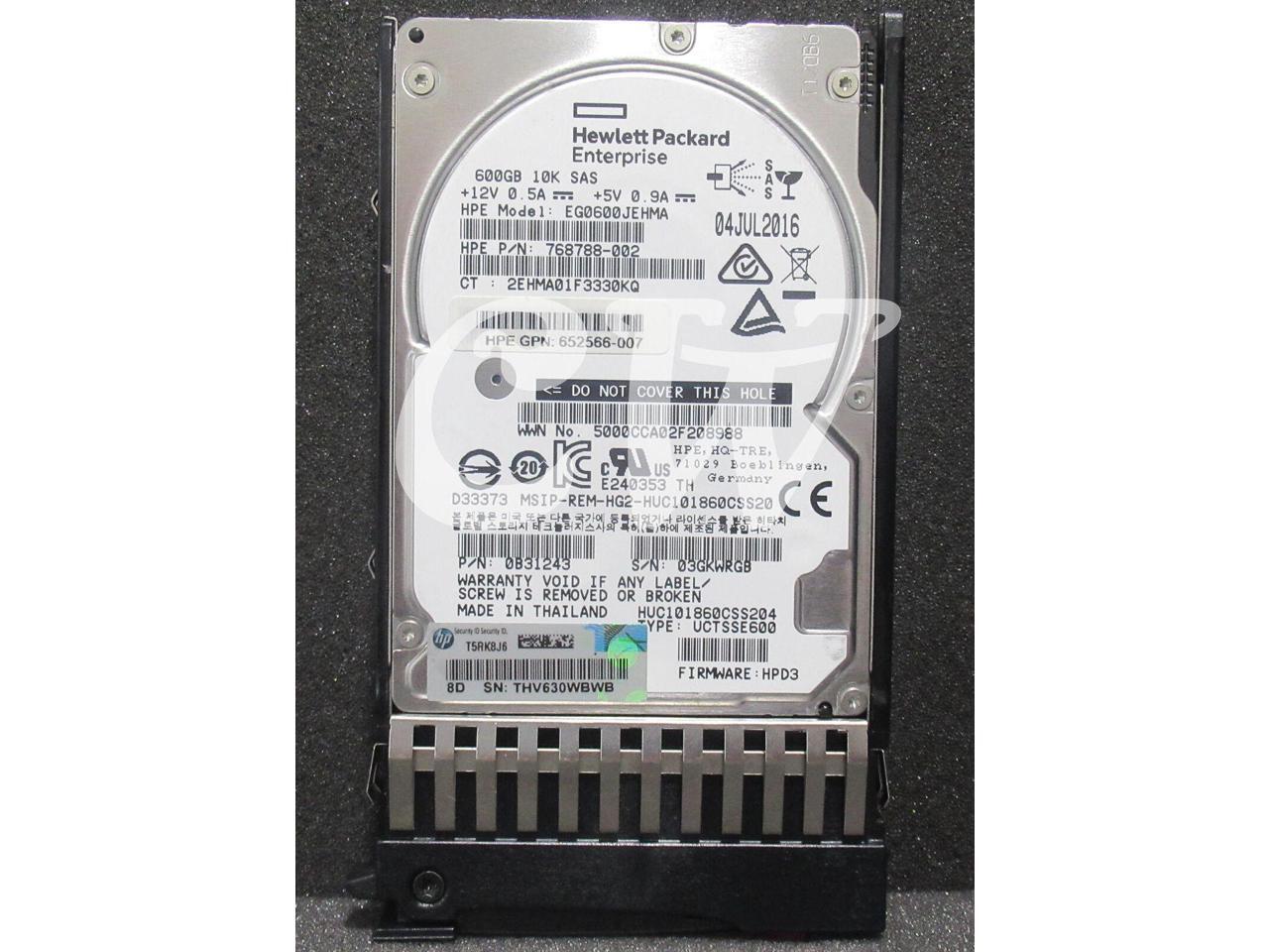 0-HOURS 581286-B21 768788-002 J9F46A HPE 600GB 10K 12G 2.5in SAS Hard Drive
