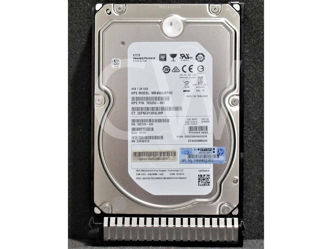 867269-B21 765252-001 HPE 4TB 7.2K RPM 12Gbps Midline 3.5" SAS Hard Drive