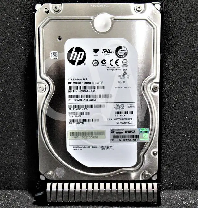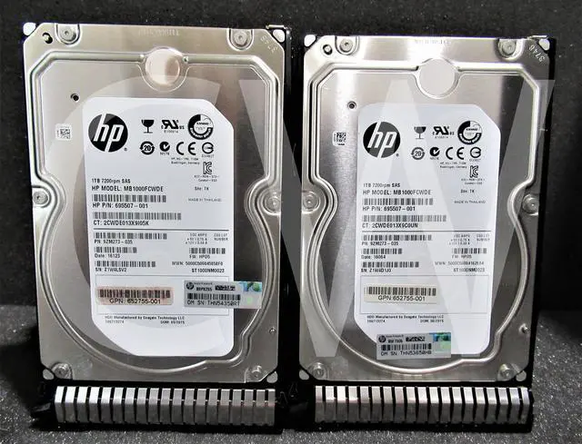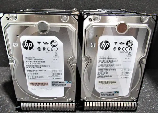 LOT OF 10 HP 695507-001 652753-B21 1TB 7200RPM 6Gbps 32MB 3.5IN SAS Hard Drive MB1000FCWDE - Includes SMART CARRIER Caddy/ Tray