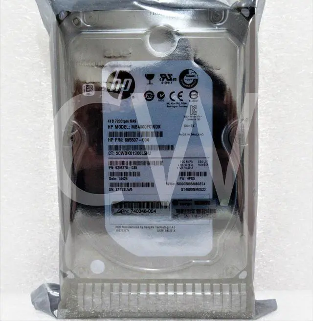 HP 695842-001 695510-B21 4TB 7200RPM 6Gbps 3.5IN SAS Dual Port MDL GEN8 Hard Drive MB4000FCWDK - Includes SMART CARRIER Caddy/ Tray
