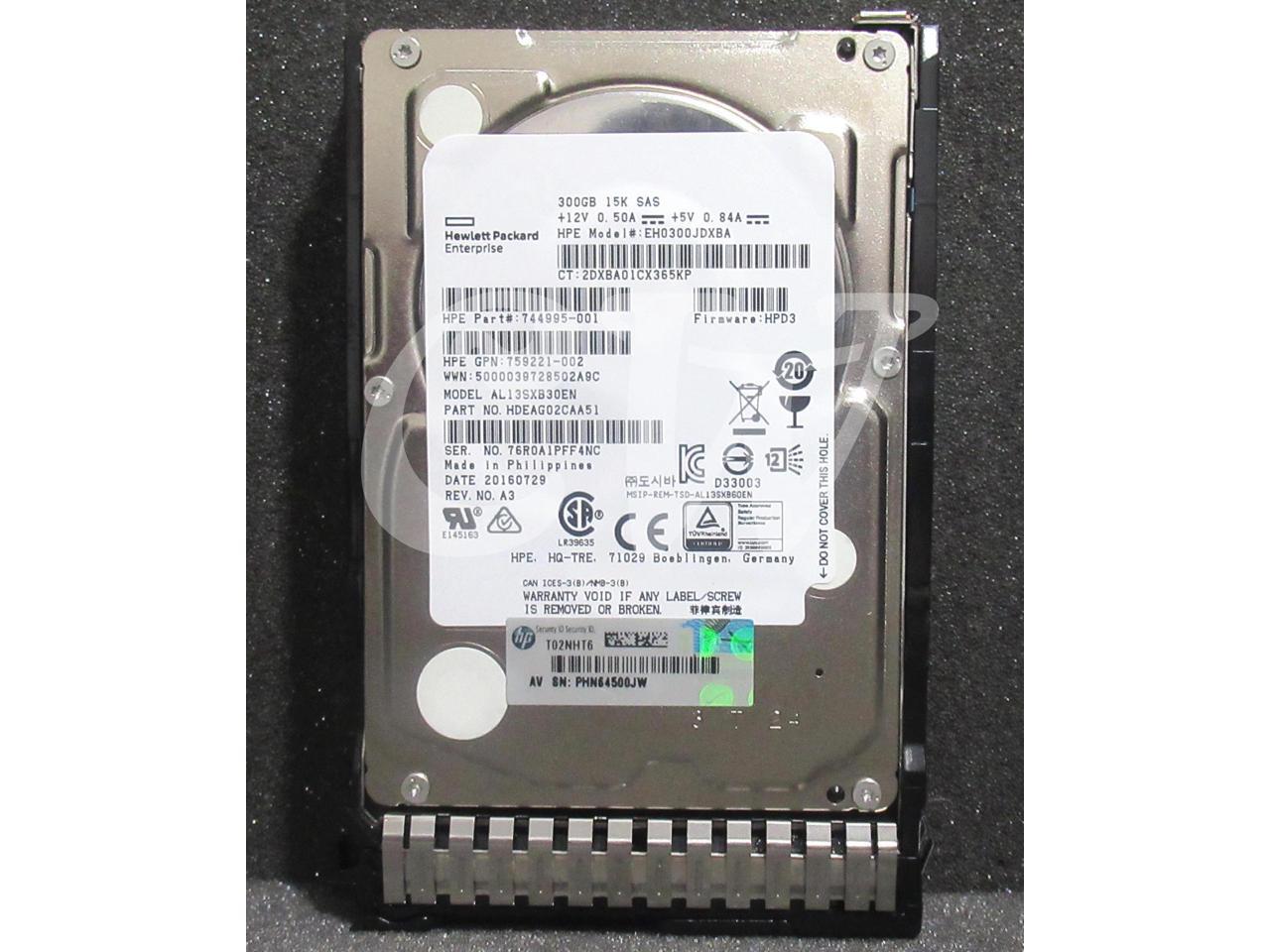 - HPE 759208-B21 744995-001 300GB 15000RPM 12Gbps 2.5IN SAS Hard Drive EH0300JDXBA - Includes SMART CARRIER Caddy/ Tray
