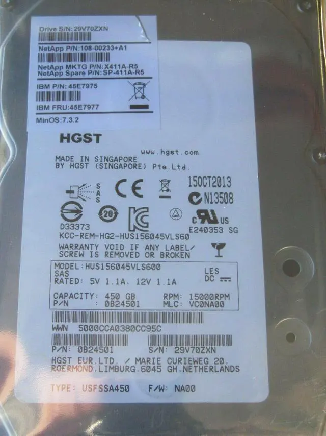 NetApp 450GB 15K SAS Hard Drive ( 0B24501, 45E7975, HUS156045VLS600, 108-00233 )