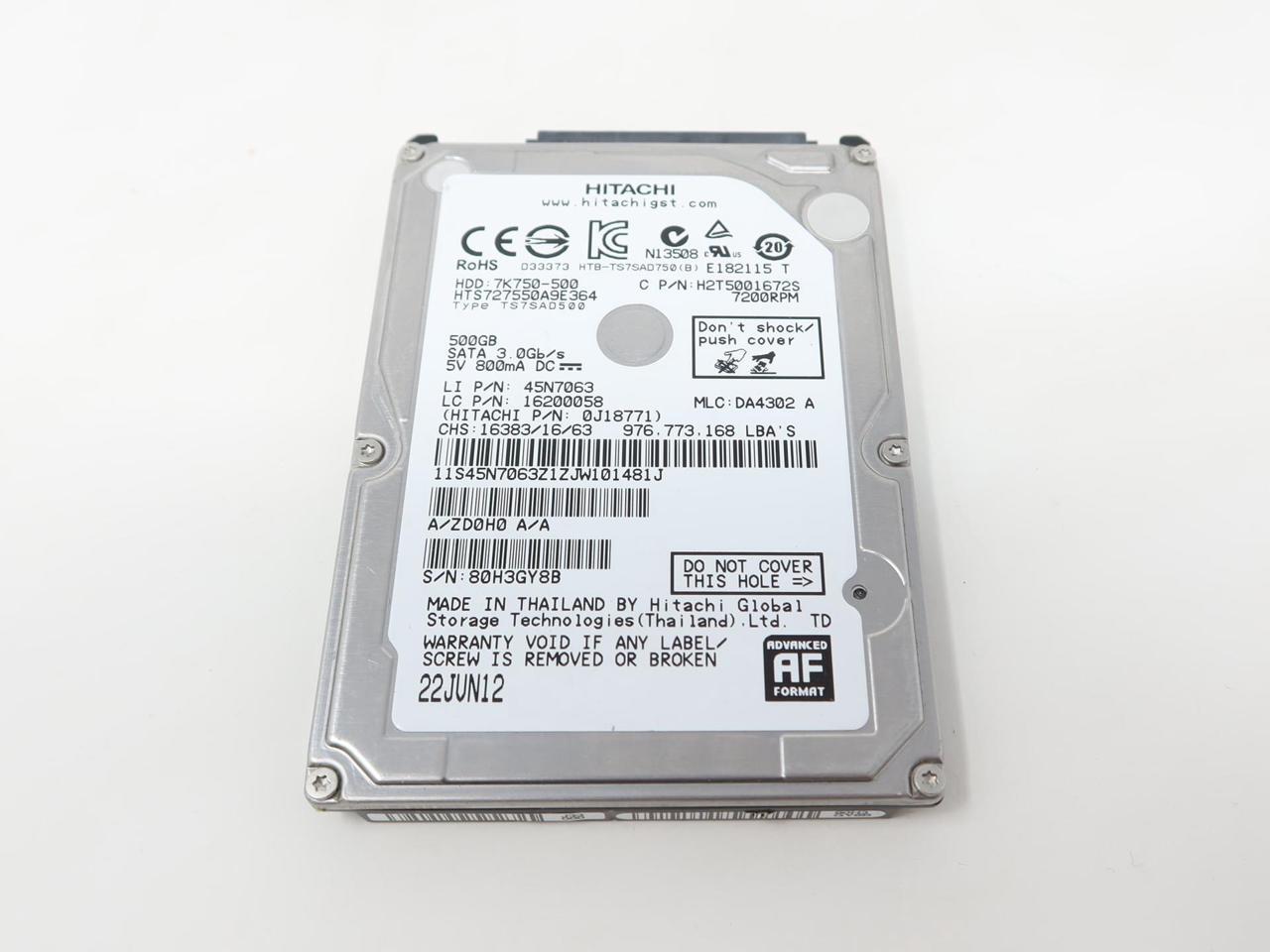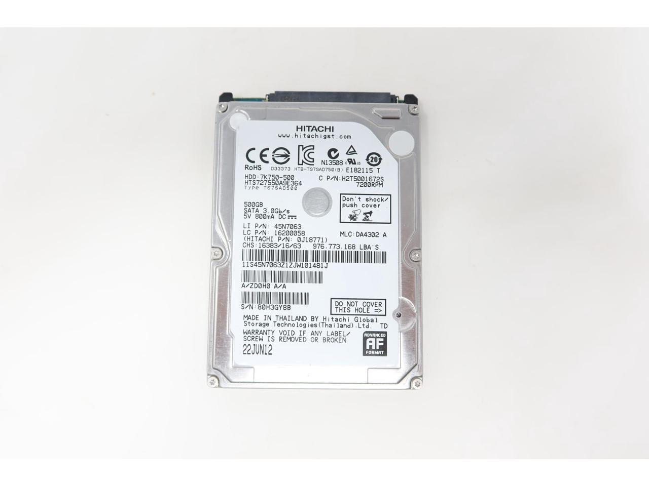 - 0J18771 HTS727550A9E364 Hitachi 500GB 2.5" SATA 7200RPM 3Gb 16MB Cache 7K750 Hard Drive