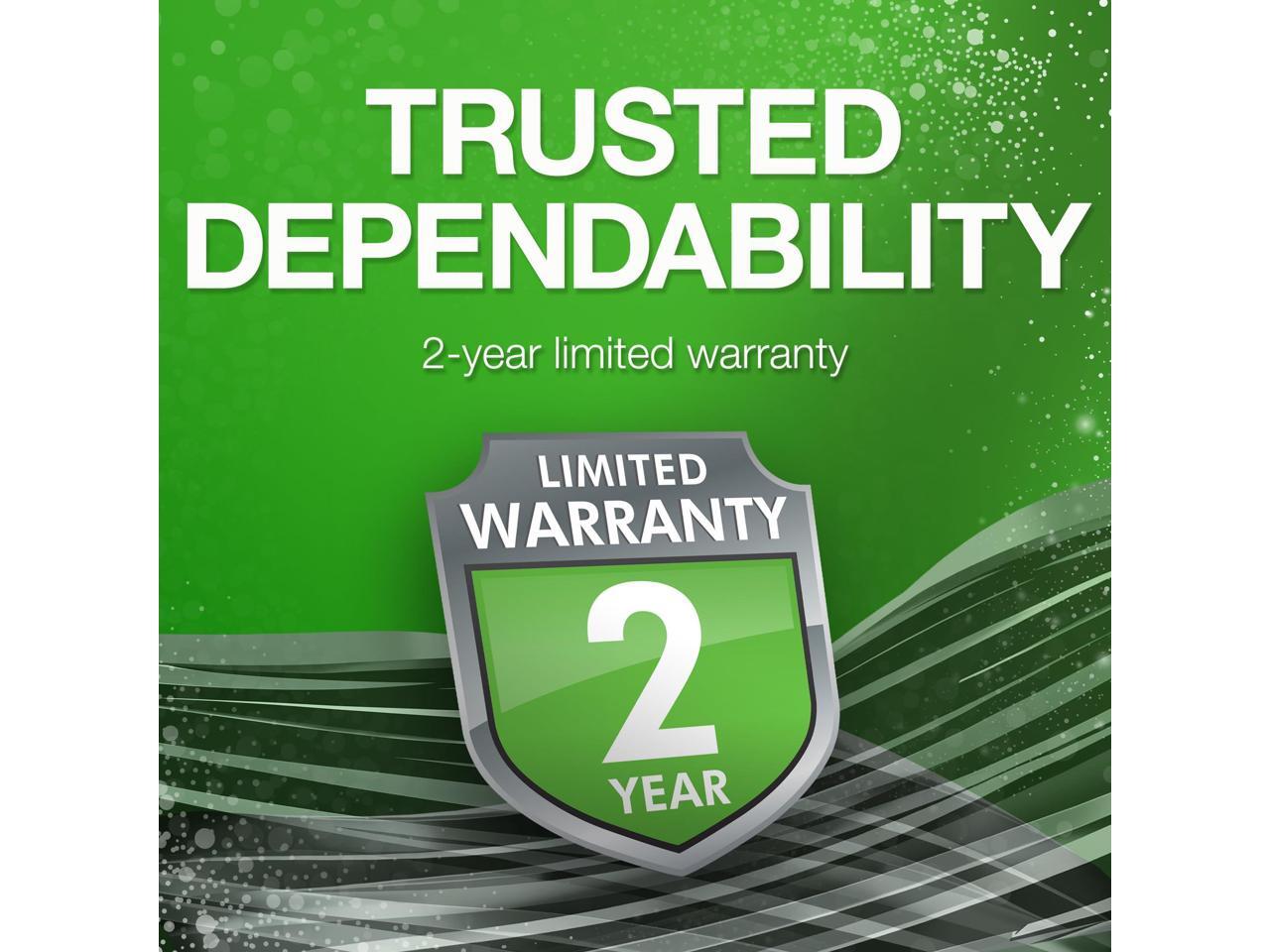 - Enjoy long-term peace of mind with the included two-year limited warranty