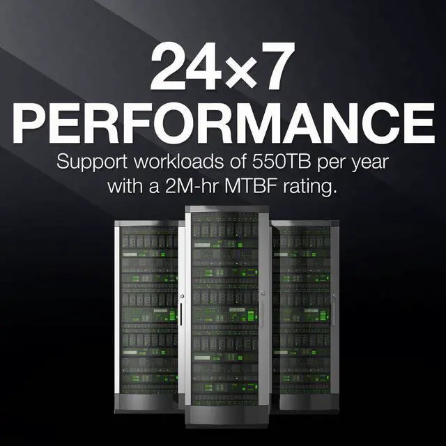 Designed for a world that never sleeps, the Exos 7E10 drives come with a 2 million hour MTBF rating and support workloads of 550 TB per year - a staggering 10 times that of standard desktop hard drives. With advanced features such as state-of-the-art cache, on-the-fly error correction algorithms, and a rotational vibration design, the Exos 7E10 ensures consistent performance in replicated and RAID multi-drive systems. The Exos 7E10 is a high-performance solution for mainstream data center applications, offering the most efficient and cost-effective data center footprint available today. It seamlessly integrates into bulk storage systems with 12 Gb/s SAS and SATA 6 Gb/s interface options.