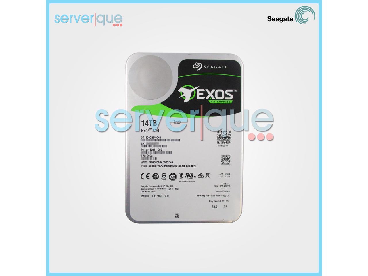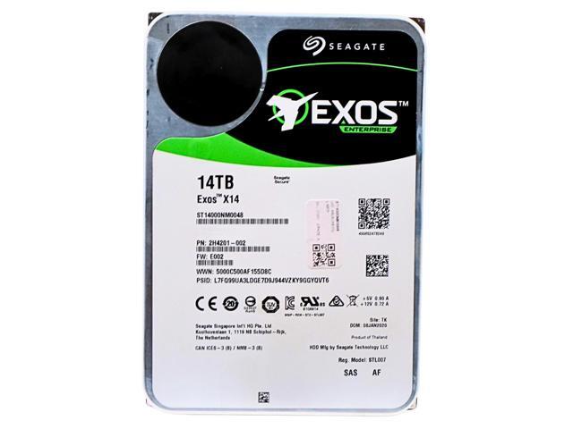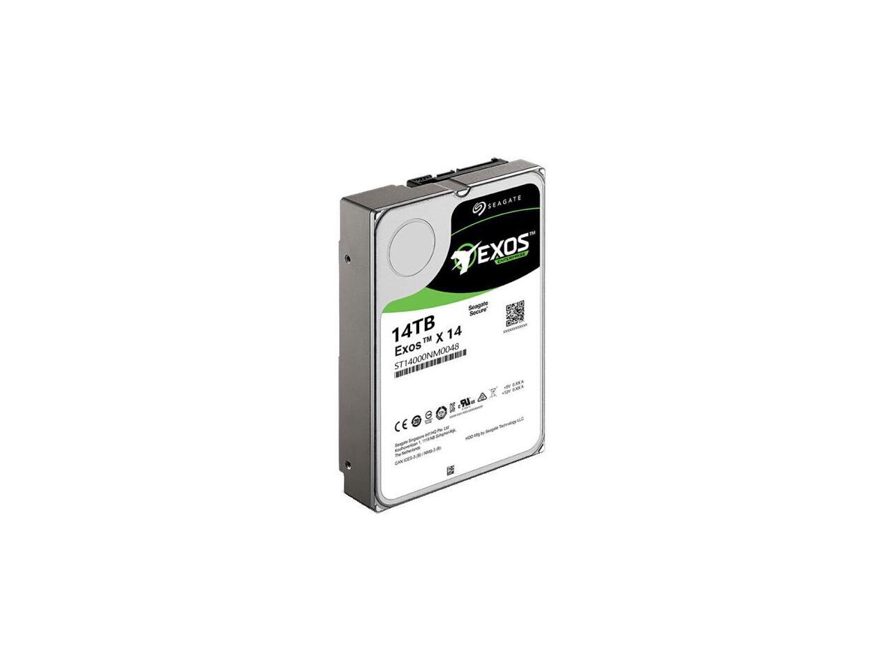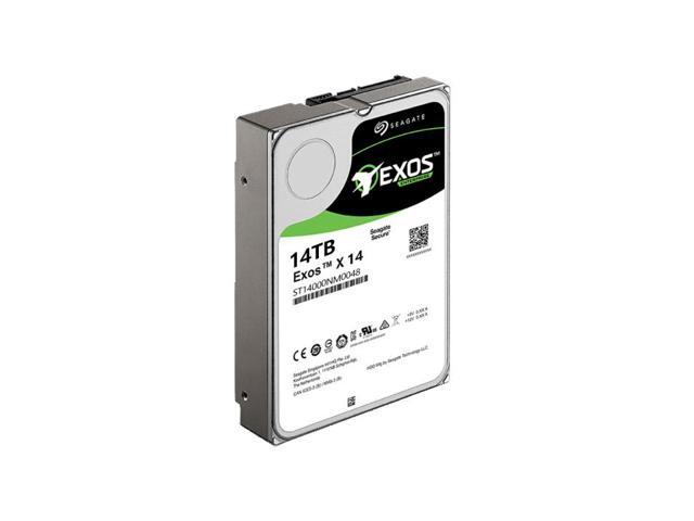 - General InformationManufacturer: Seagate TechnologyManufacturer Part Number: ST14000NM0048Manufacturer Website Address: http://www.seagate.comBrand Name: SeagateProduct Line: ExosProduct Series: X14Product Model: ST14000NM0048Product Name: Exos X14 ST14000NM0048 Hard DriveMarketing Information: Seagate manufactures hard drives that specifically address the needs of the hyperscale storage market. As the flagship of the Seagate® X class, the Exos™ X14 and Exos X14z enterprise hard drives are the highest-capacity hard drives in the fleet.Maximum Storage Capacity for Highest Rack Space Efficiency 14TB per drive for 40% more petabytes per rack Industry's lowest power and weight for optimum data center TCO Highest 14TB hard drive performance with enhanced caching, making it perfect for big data applications Hyperscale SATA model tuned for large data transfers PowerBalance™ feature optimizes IOPS/Watt Helium sealed-drive design with no porosity and uniform density Superior