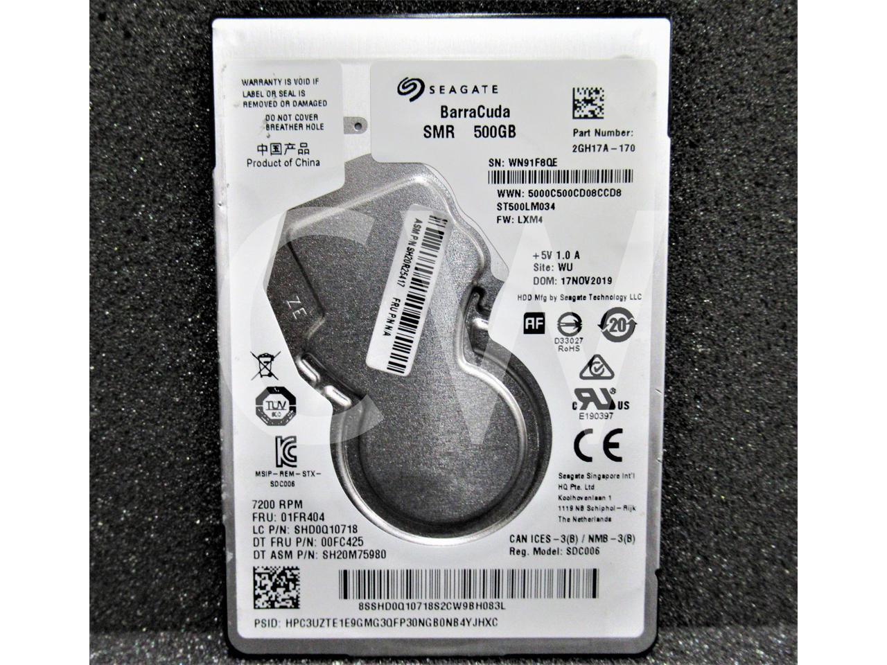 Seagate BARRACUDA 2GH17A-170 SMR ST500LM034 500GB 7200RPM 6Gb/s 128MB 2.5IN SATA Hard Drive - (Bare Drive ONLY)