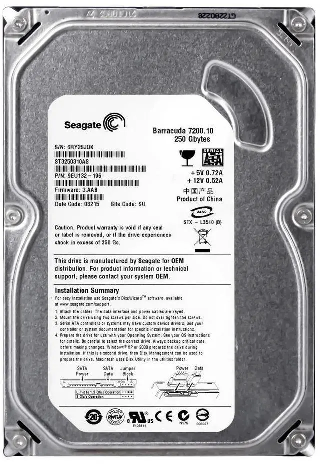Seagate BARRACUDA 7200.10 ST3250310AS 9EU132-300 250GB 7200RPM 3Gb/s 8MB 3.5IN SATA Hard Drive