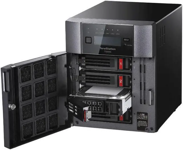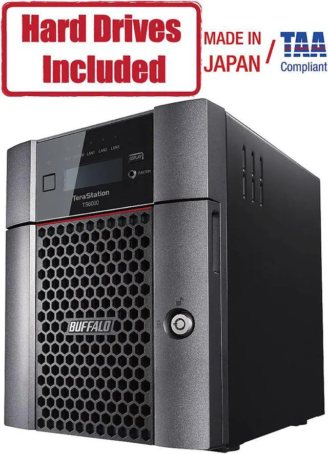TeraStation 6000 Desktop is a high performing Network Attached Storage solution with NAS-grade hard drives included; ideal for securing data against cyber threats, large business files, graphics, video (Auto CAD, etc. ), cloud integration, and iSCSI virtualization target. (VMware Certified)