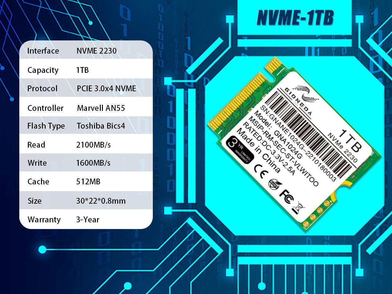 GIONEDA M.2 NVME 2230 1TB SSD PCI-Express Gen3.0x4 3D NAND Gaming Internal Solid State Drive for Surface Laptop 3, 4, Pro 7+, 8, X, Steam Deck
