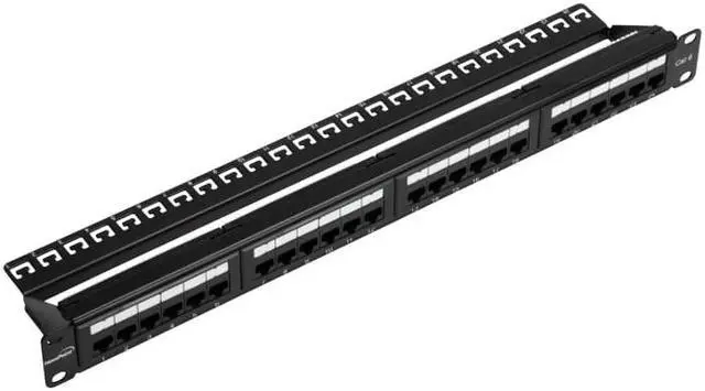This NavePoint 24-Port CAT6 patch panel is the perfect addition for your home or office network and can be mounted to any EIA standard rack, bracket or in an enclosure with ease. This panel offers TIA/EIA 568-C. 2 compliant performance and is backward compatible with CAT5e allowing you to upgrade your network over time. The kit includes new icon labels with plastic holders that you can mount on the front of the panels for easy port identification.