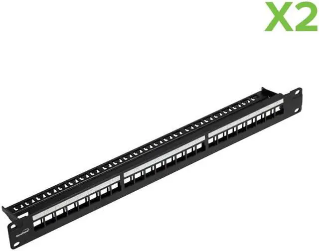 This is a 2-pack. You will receive 2 items with this listing. The blank (empty) patch panel is a 19 inch rack mountable panel designed to accomodate virtually any snap-in jacks. The kits includes the new icon labels with plastic holders that mount on the front of the panels for easy port identification. Blank anodized panels can be mounted directly to any EIA standard 19 inch relay back or cabinets.