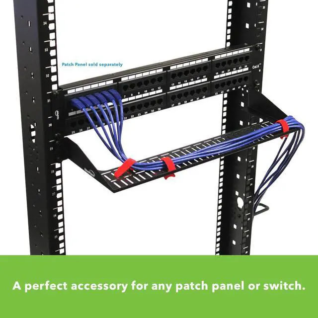 This NavePoint 1U cable lacing cable management shelf is made from 1.2 mm cold rolled steel for sturdy solid construction. It is the perfect solution for managing or routing cables from your server, patch panel, switch, router, or any other component in your rack. The shelf contains both verticle and horizontal slots to allow for any cable orientation you desire. It has a low profile at only 6 inches deep. Will mount to any standard 19 inch rack or cabinet. Available in 2, 3, 4, and 5 packs.