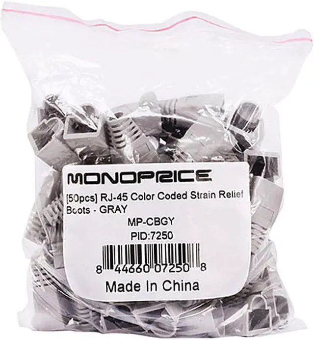 Monoprice RJ45 Strain Relief Boots, 50 pcs/pack, Gray