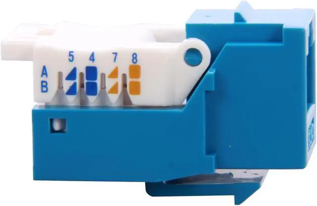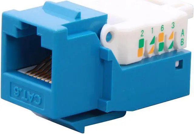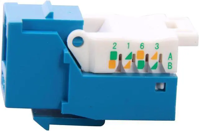 The CAT6 network keystone jacks with blank wall plates and blank patch panels to create a custom configuration specific to your needs. These keystone jack tool-less style connectors offer users simple installation without the need for a punch down tool. Each jack has an integrated T568A/B color-wiring diagram for ease of installation.