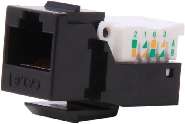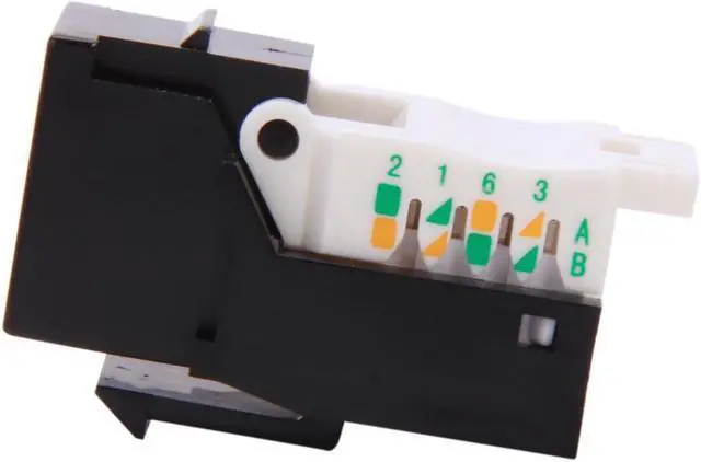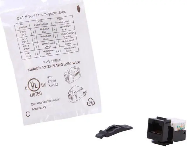 The CAT6 network keystone jacks with blank wall plates and blank patch panels to create a custom configuration specific to your needs. These keystone jack tool-less style connectors offer users simple installation without the need for a punch down tool. Each jack has an integrated T568A/B color-wiring diagram for ease of installation.