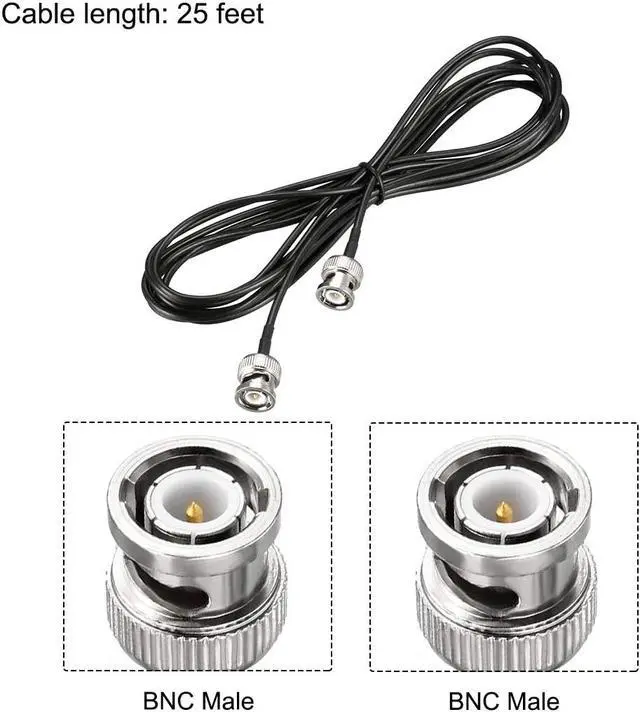 50 OHM 4 INCH BNC to BNC extension cable, matched BNC connectorsCoaxial cable with BNC male connectors for video audio signal transmissionHigh quality nickel plated connector body and gold plated brass contactsPerfect for broadcast, video transmission and video surveillanceRG174 coaxial cable has durable and flexible PVC outer layer
