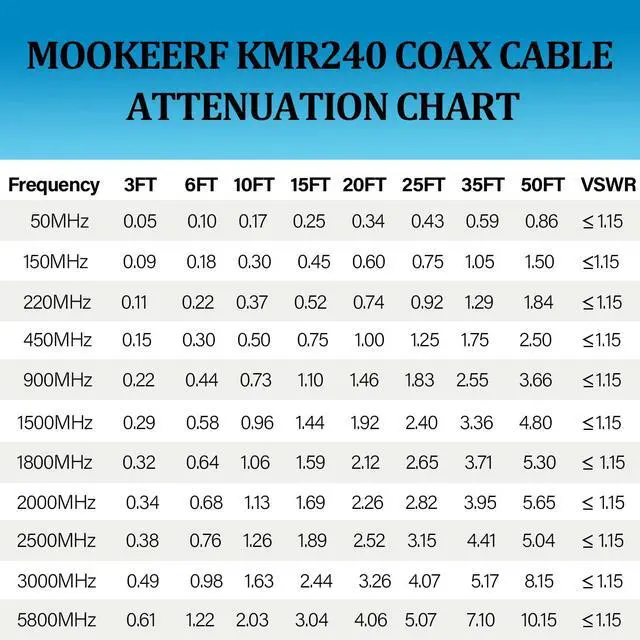 | Cable Type | KMR240 Coaxial Cable (LMR240 Coaxial Cable/RG8X Coaxial Cable Equivalent) |