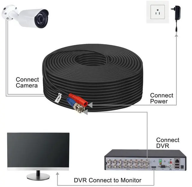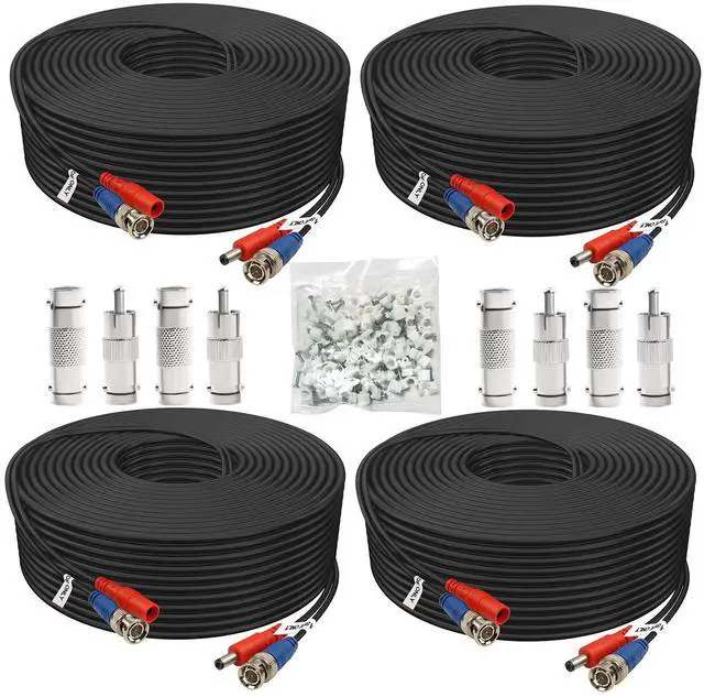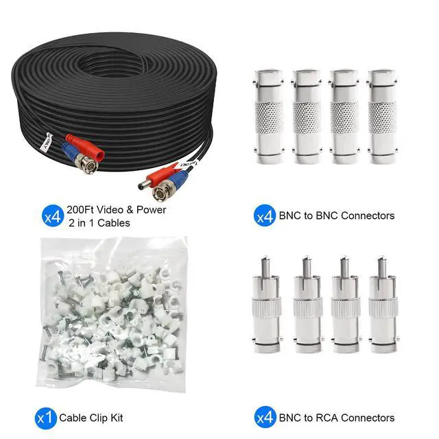 Package Included 4 Pieces 200 Feet Black BNC Cable,8 Pieces Connectors,100 Pieces Cable Clips.