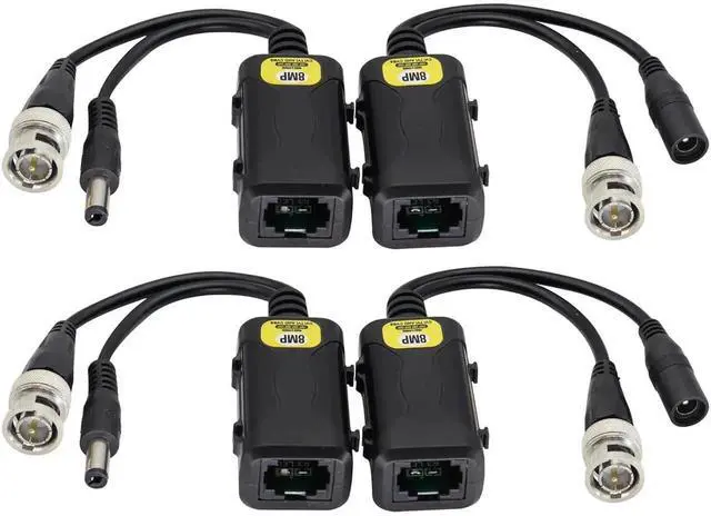 JAENFONG 8MP HD Balun RJ45 to BNC Video Baluns transceiver Passive with DC Power Jack for 720P-1080P 3MP 4MP 5MP 8MP HD-CVI/TVI/AHD/CVBS CCTV Security DVR Surveillance Camera System(16.5cm/2Pairs)
