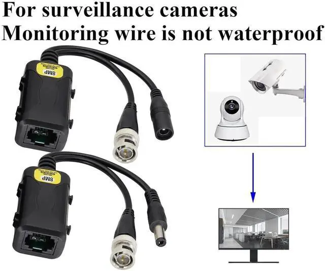 8MP/4K HD Video BNC and DC Power Transmission to UTP CAT5/CAT6 RJ45 cable. Transmission Maximum distance length:HD-CVI/AHD/TVI/CVBS Cameras:(720P 960P (MAX) Transmission 300 meters/984ft) ,(1080P 3MP 4MP 5MP 8MP (MAX) Transmission 200 meters/656ft). Maximum Transmission of DC power is 200 meters/656ft, input, and output 12V~48V(no voltage regulator chip, please choose the appropriate power supply according to the camera voltage). The RJ45 female connector adopts the HD568B connection method.