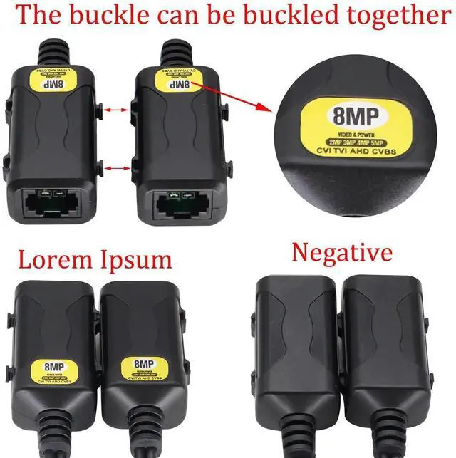 (Note: Not applicable to any IP digital cameras or NVR systems!) Compatible withHD CVI, TVI, CVBS and AHD video devices, Fit for 720P 960P 1080P 3MP 4MP 5MP 8MP CCTV Cameras, monitor, DVR card and recorder etc. Easy installation, using the standard UTP CAT5/CAT5E/CAT6 cable system and (12-48V) low voltage power supply.