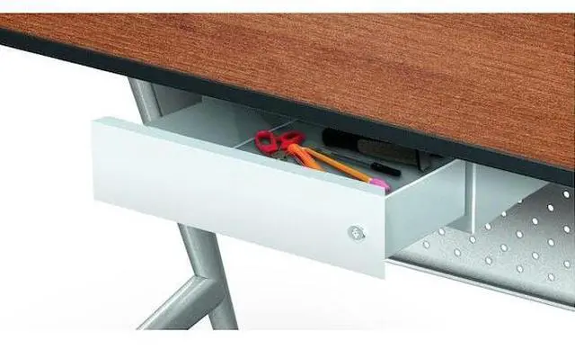 Locking Drawer, Instructor Series, Color Silver, Overall Width 15 1/2 in, Overall Height 3 1/2 in, Overall Depth 12 1/2 in, Material Steel, For Use With 15 1/2 in Width Tables, Includes Mounting Hardware