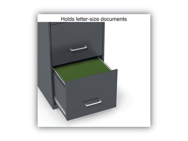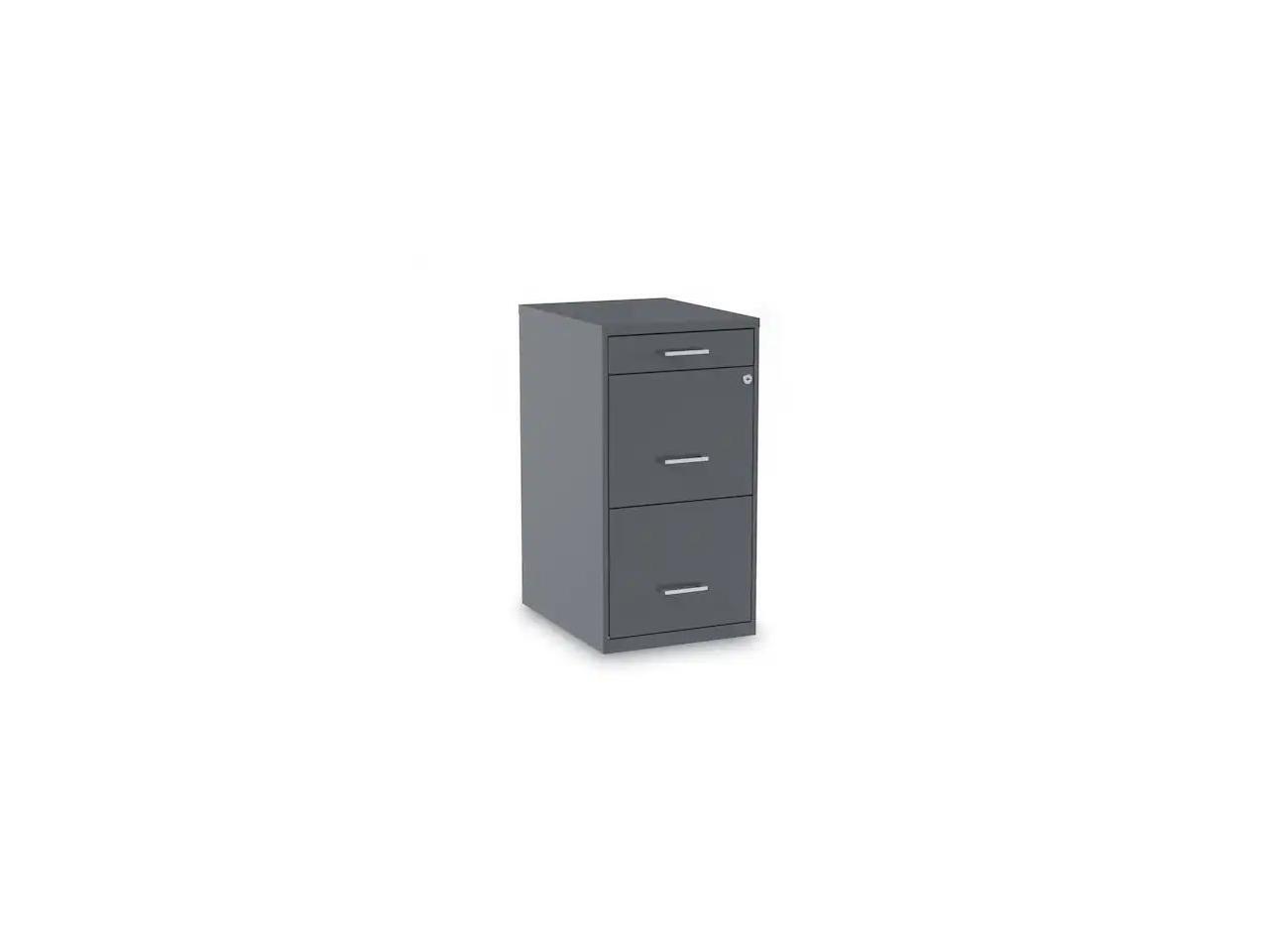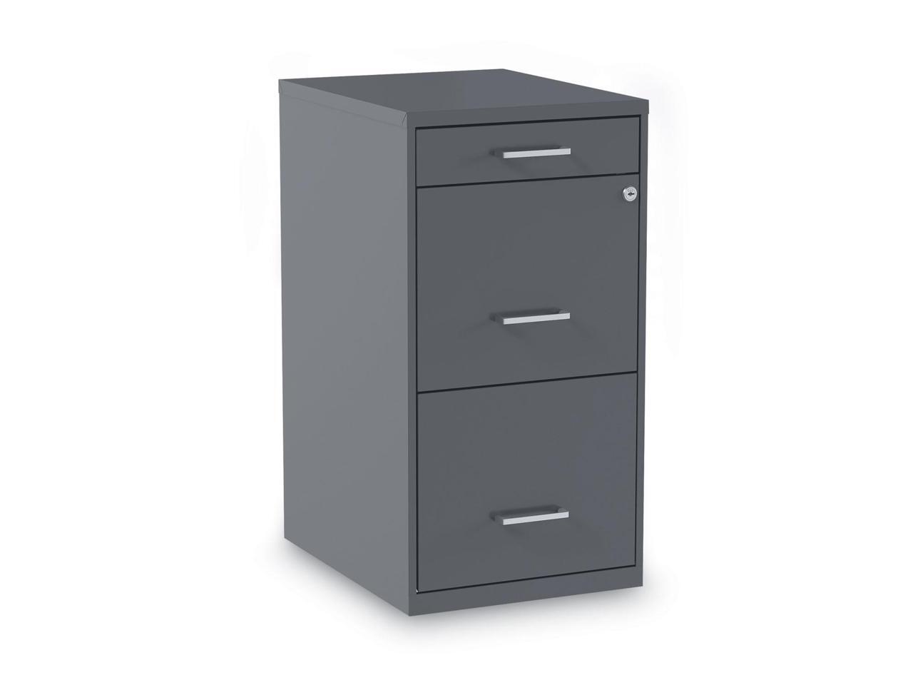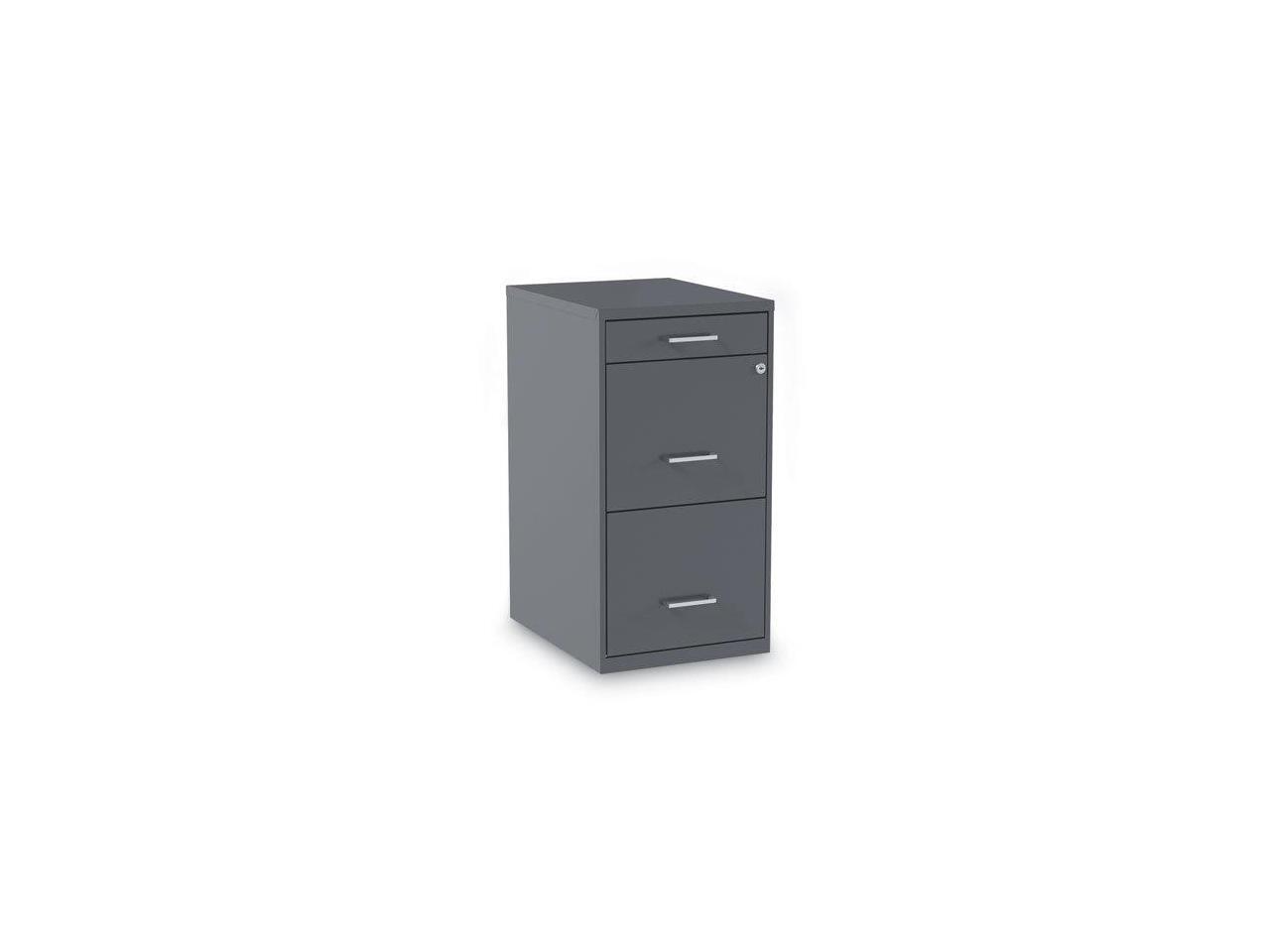- Three-drawer light duty filing cabinet holds letter size documents